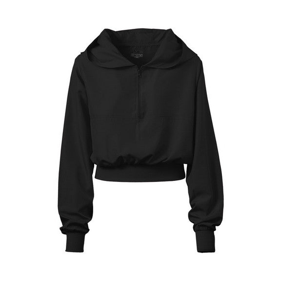 Sporty style and comfort meet in our Women’s Squad Quarter Zip Hoodie. With a stay-put hood and cropped silhouette, this pullover adds a modern edge to the classic Soffe look.