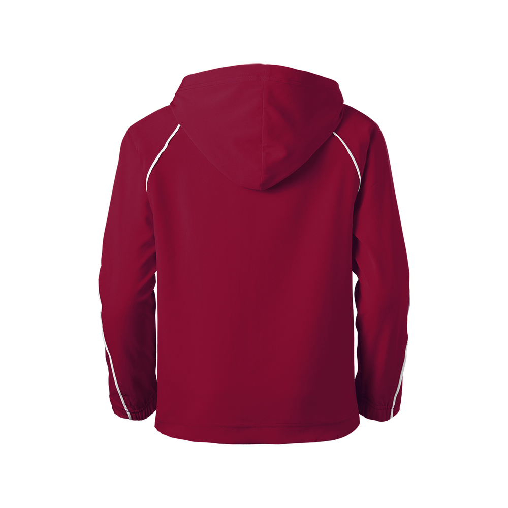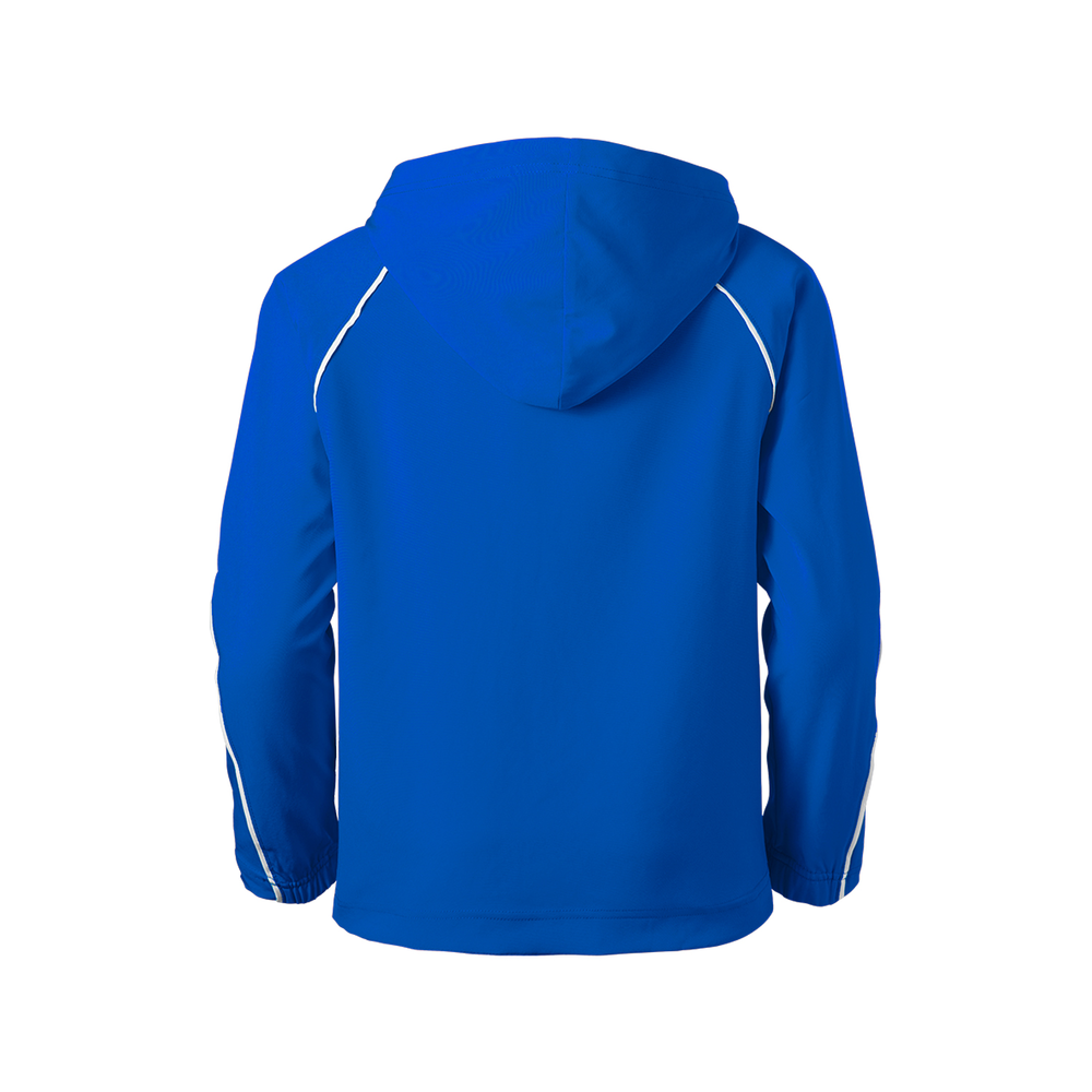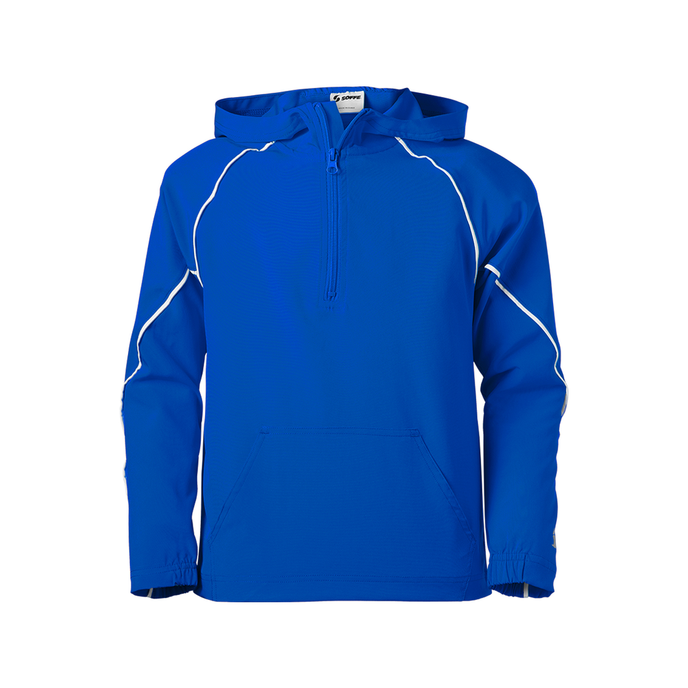 The Youth Game Time Warm Up Hoodie from Soffe is wind and water resistant to keep you warm and dry. The spandex stretch woven material allows ease of movement so you can perform at your best.