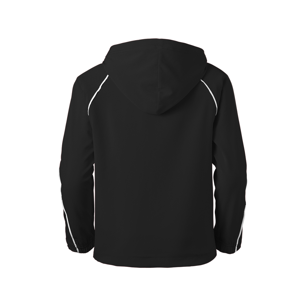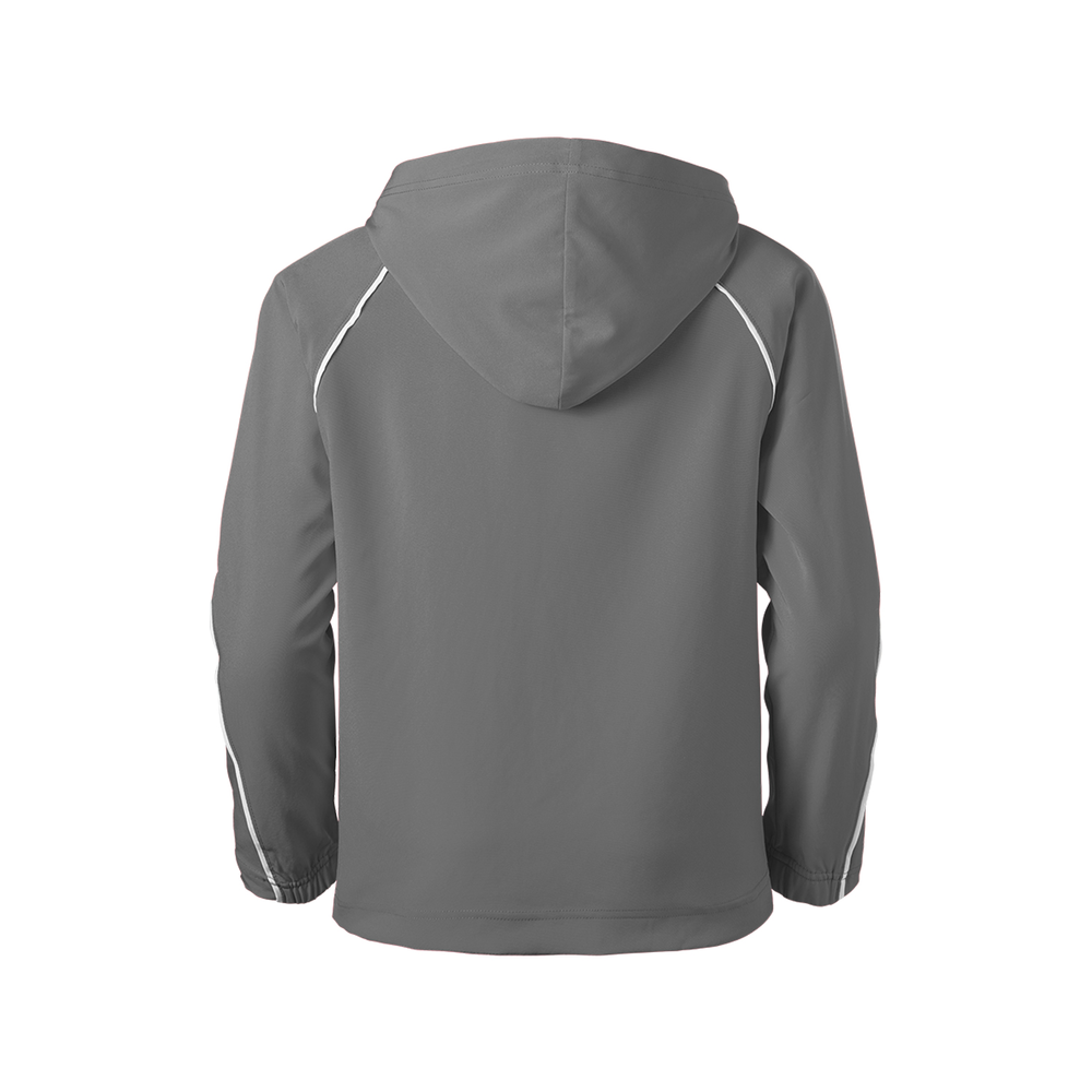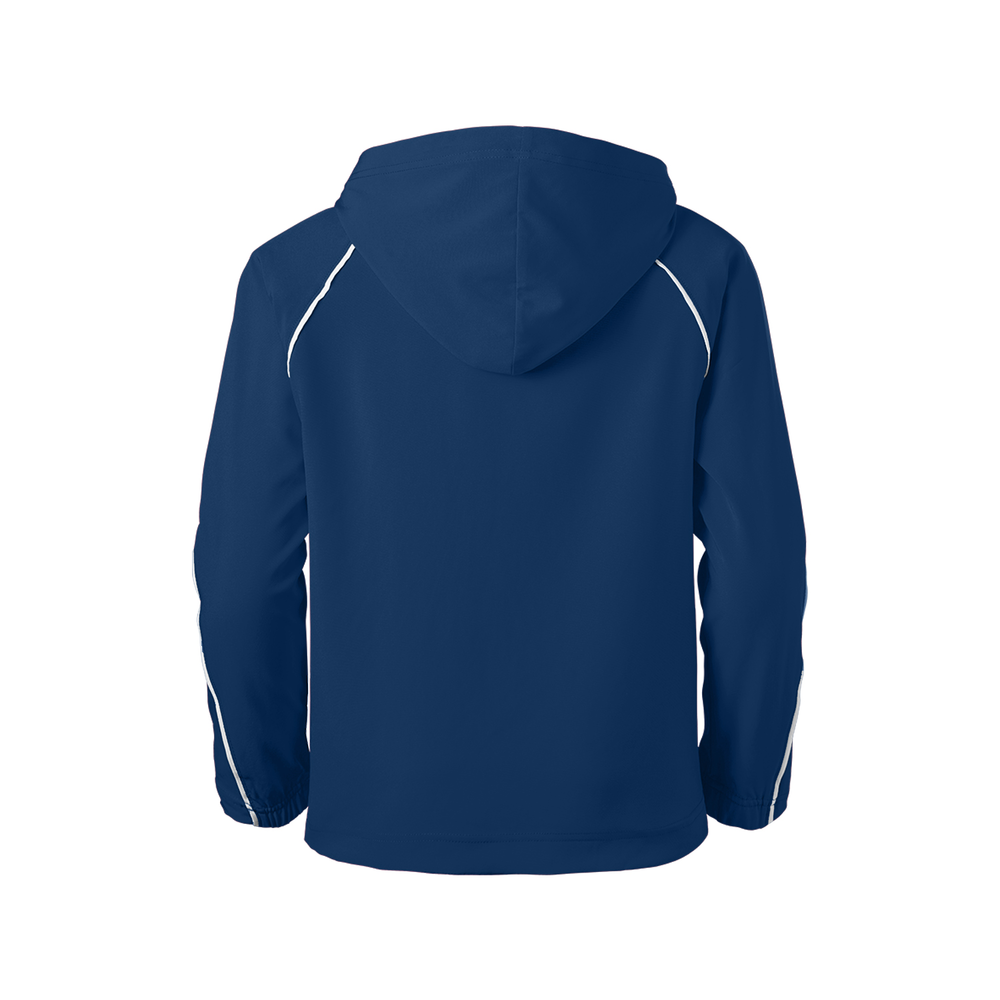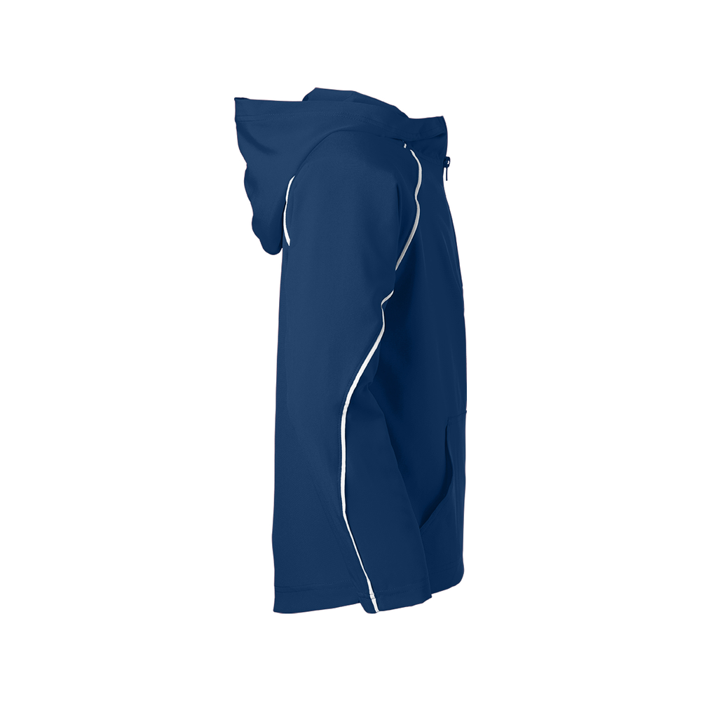 The Youth Game Time Warm Up Hoodie from Soffe is wind and water resistant to keep you warm and dry. The spandex stretch woven material allows ease of movement so you can perform at your best.