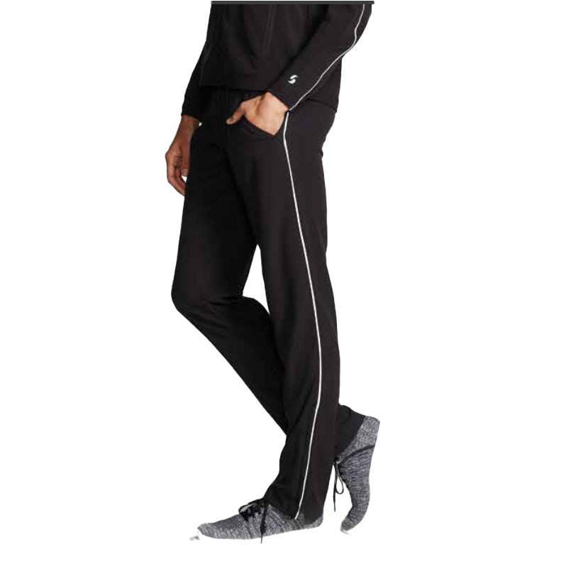 • Side pockets; covered zipper leg opening; contrast white piping on pant legs