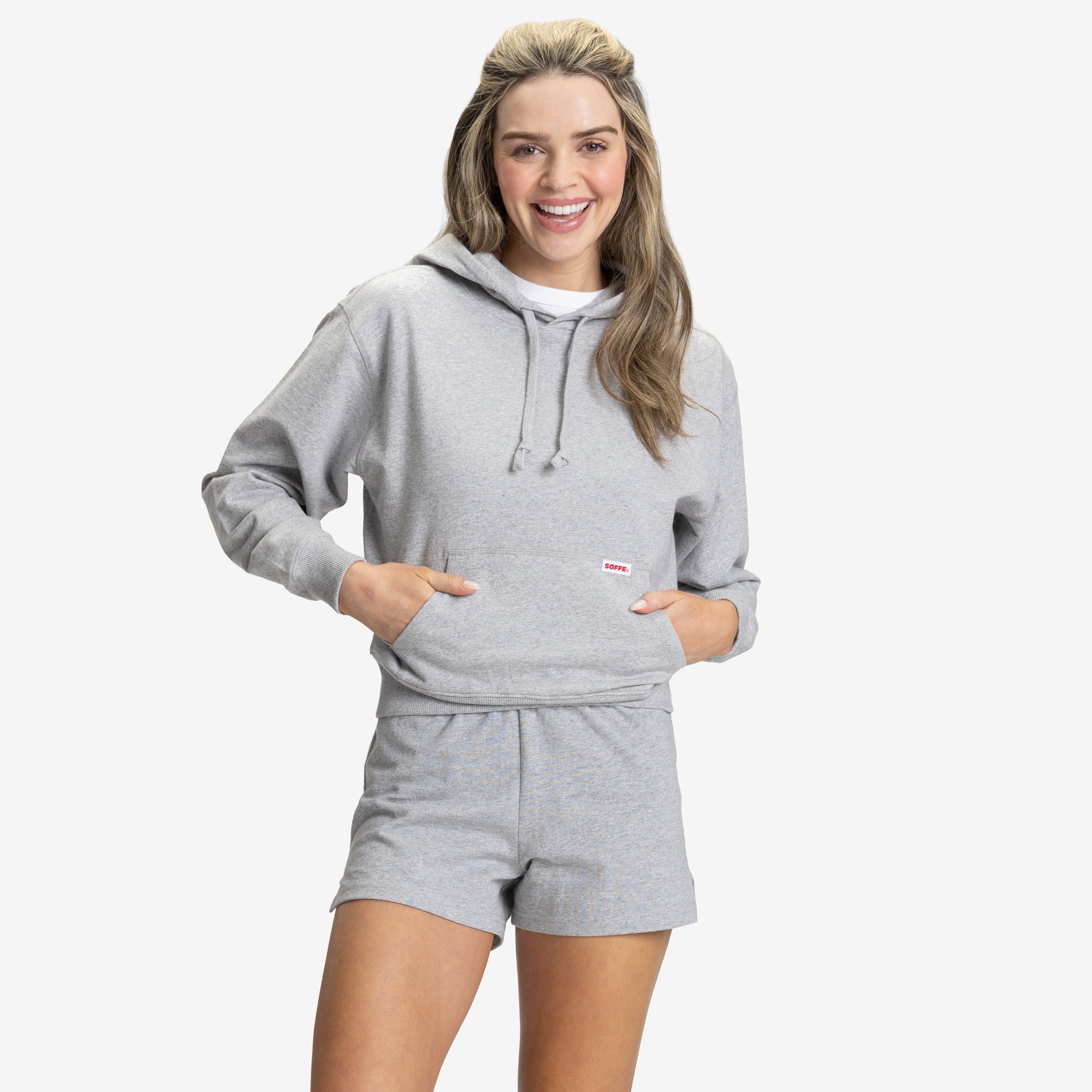 Classic, midweight hoodie made with 100% breathable French Terry Cotton. Soft, looped interior offers warmth & durability. Smooth exterior provides a timeless athletic look. Pair with coordinating Cotton Terry Sweatpant or the iconic Soffe Short. Size up for a looser fit.