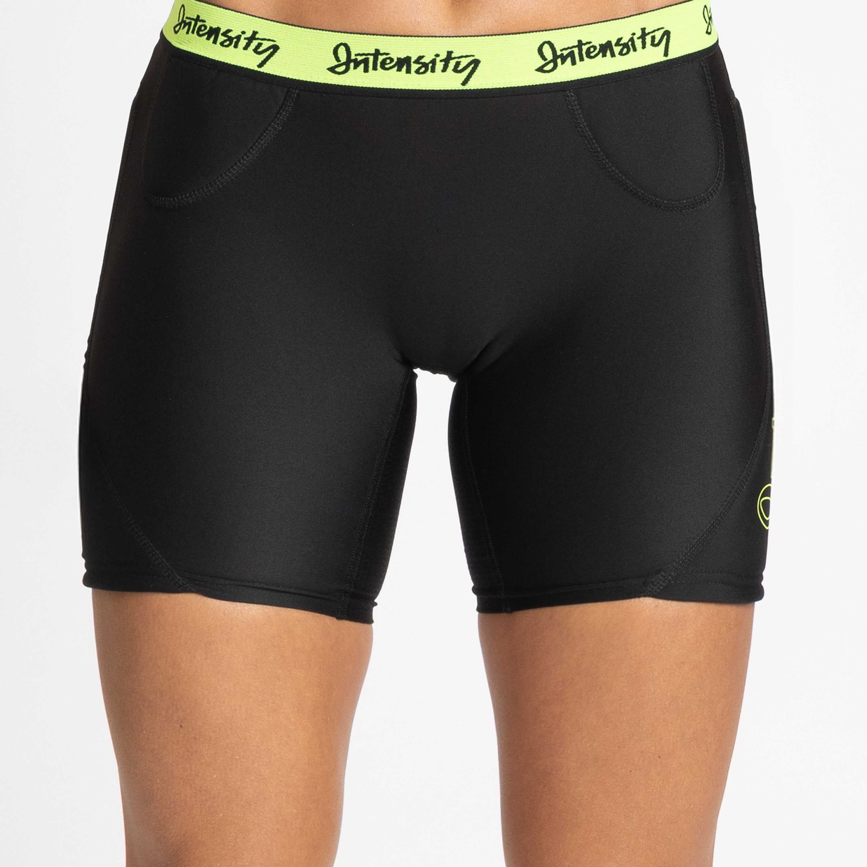 Slide with confidence in the Intensity Girls Pad Slider. Low-rise with a 5" inseam, internal hip and thigh padding, and a ventilated inner thigh insert keep her protected and cool. A branded elastic waistband ensures a secure, comfortable fit on every play.